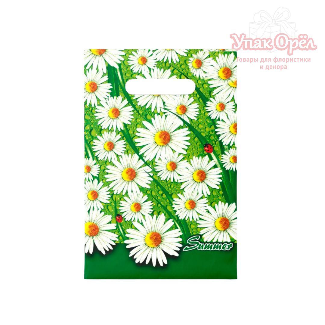Пакет полиэтилен "Ромашки", 20*30см, Зеленый, 1 штука