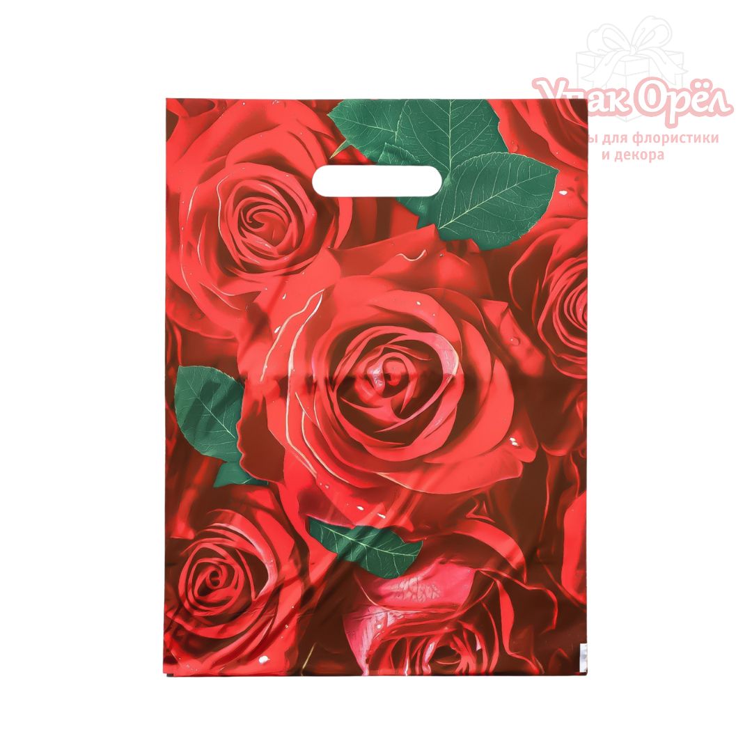 Пакет полиэтилен "Розы", 50мкм, Красный, 31*40см, 1 штука