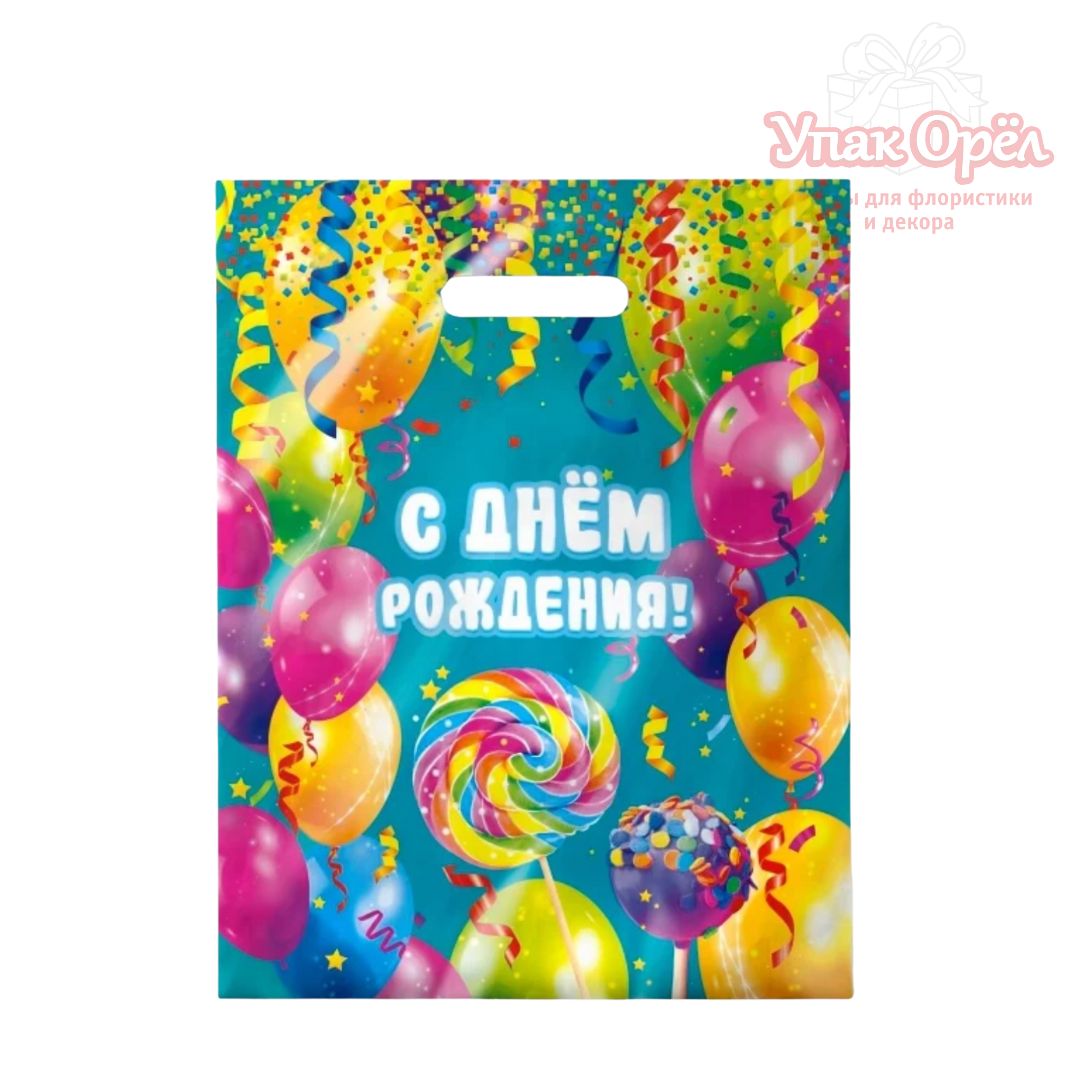 Пакет полиэтилен "С днем рождения", 60мкм, 31*40см, 1 штука
