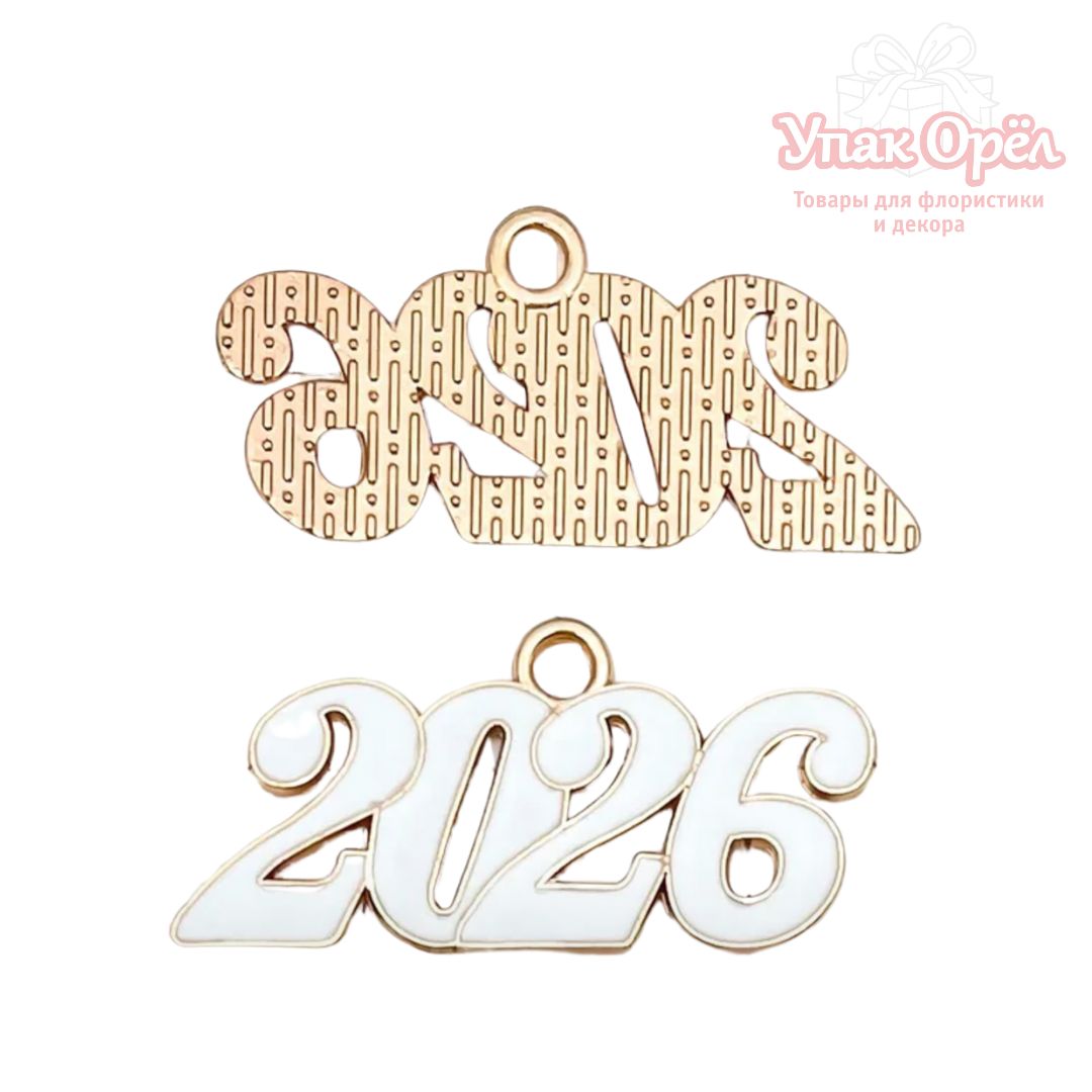 Подвеска "2026" металл, 37*18мм, Белый, 1 штука