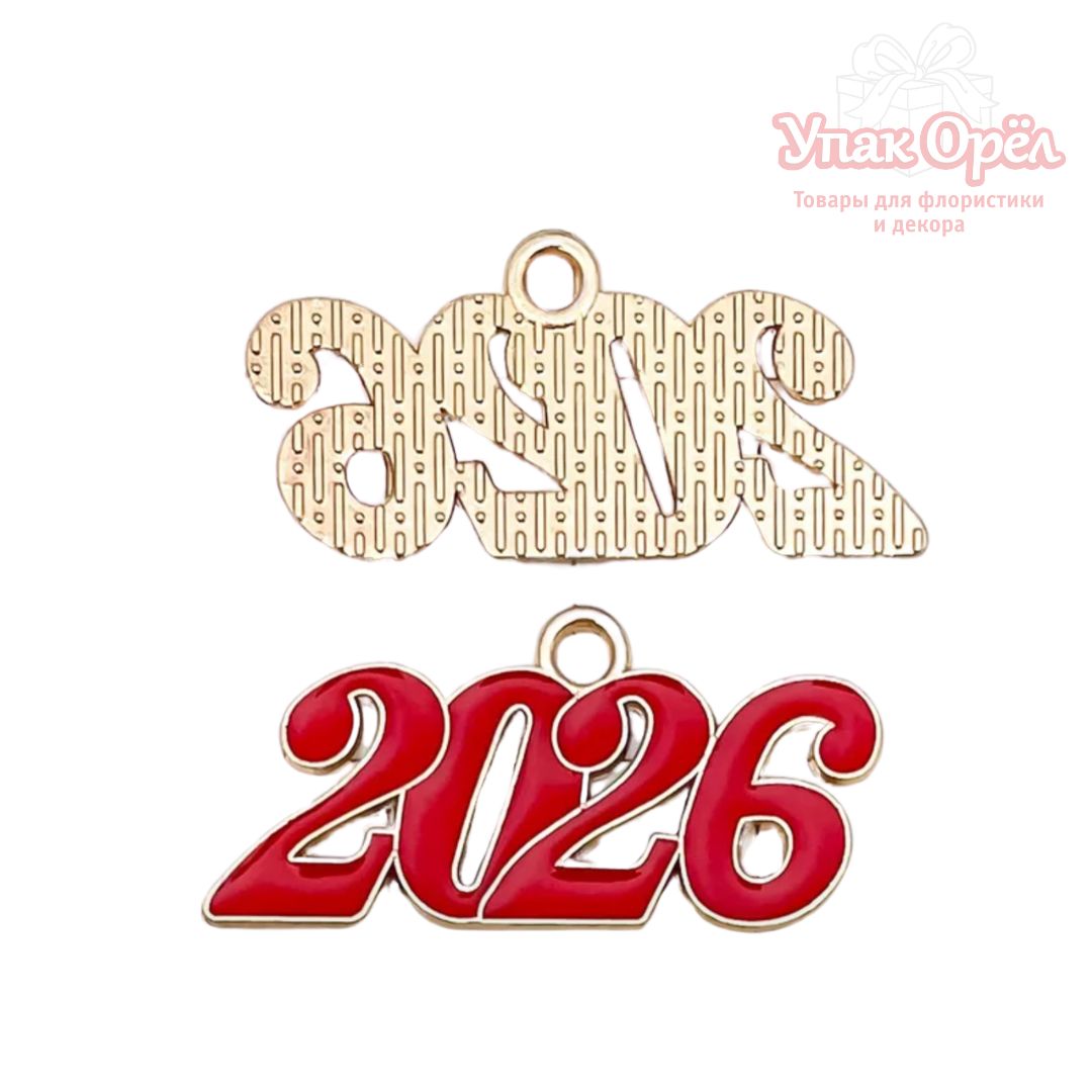 Подвеска "2026" металл, 37*18мм, Красный, 1 штука