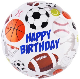 Шар воздушный фольгированный "С Днём рождения (спортивные мячи)", 18''/46см, 1 штука