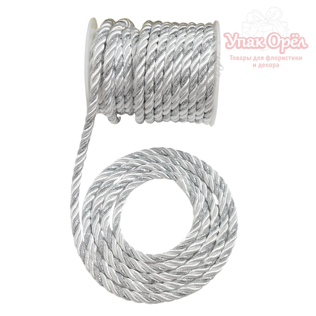 Шнур декоративный, 5мм*10ярд(9м), Белый/серебряный, 1 штука