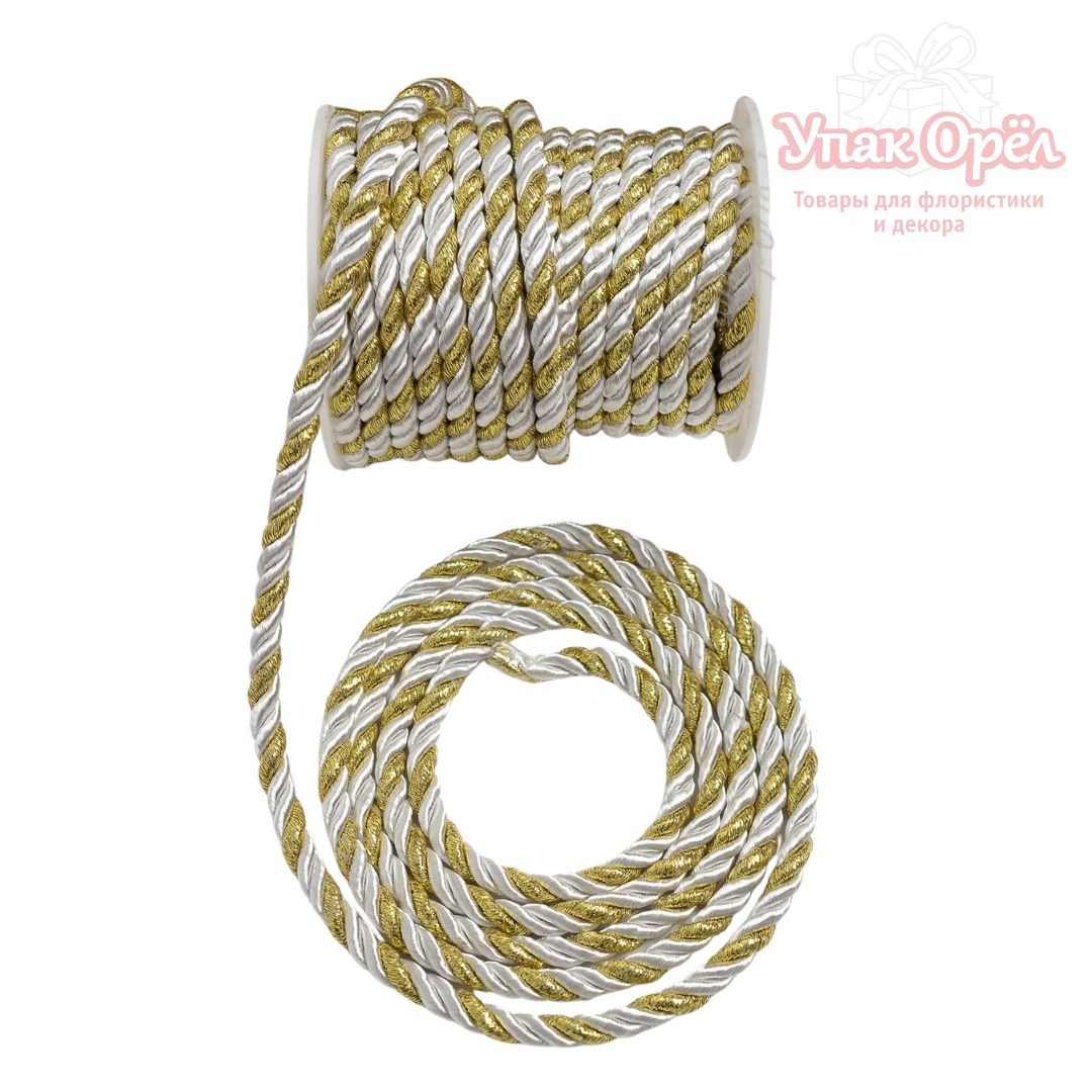 Шнур декоративный, 5мм*10ярд(9м), Белый/золотой, 1 штука