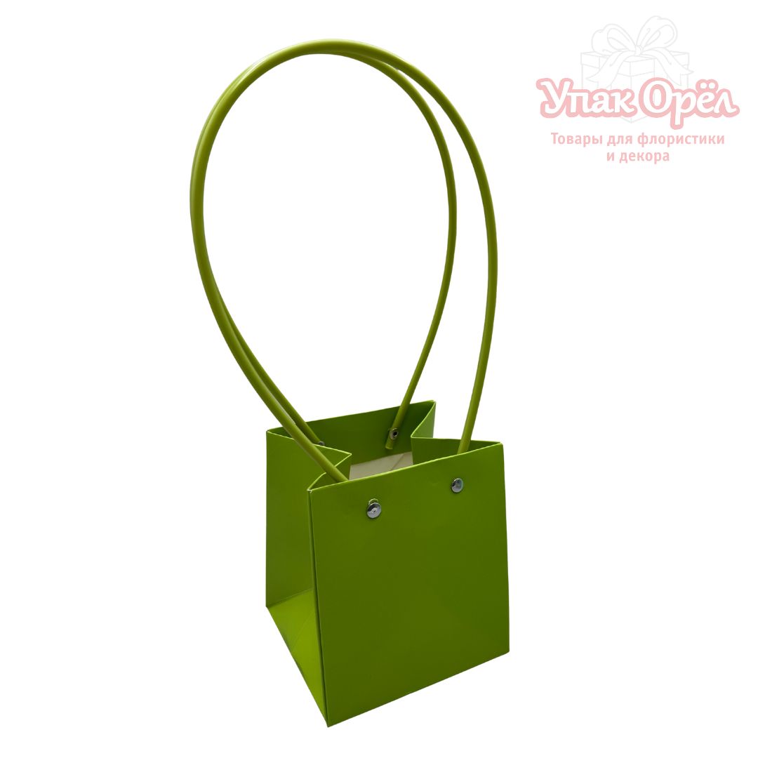 Сумка для цветов с пластиковыми ручками «Квадрат», 12,5*11,5*12,5см, Оливка