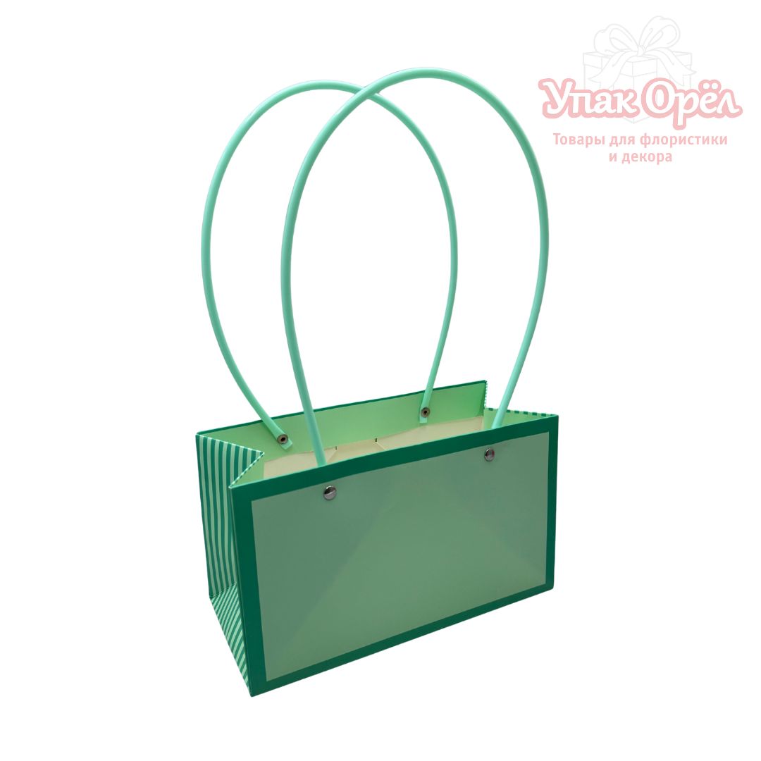Сумка для цветов с пластиковыми ручками «Прямоугольник», полоски сбоку, 22*10*12см, Мятный