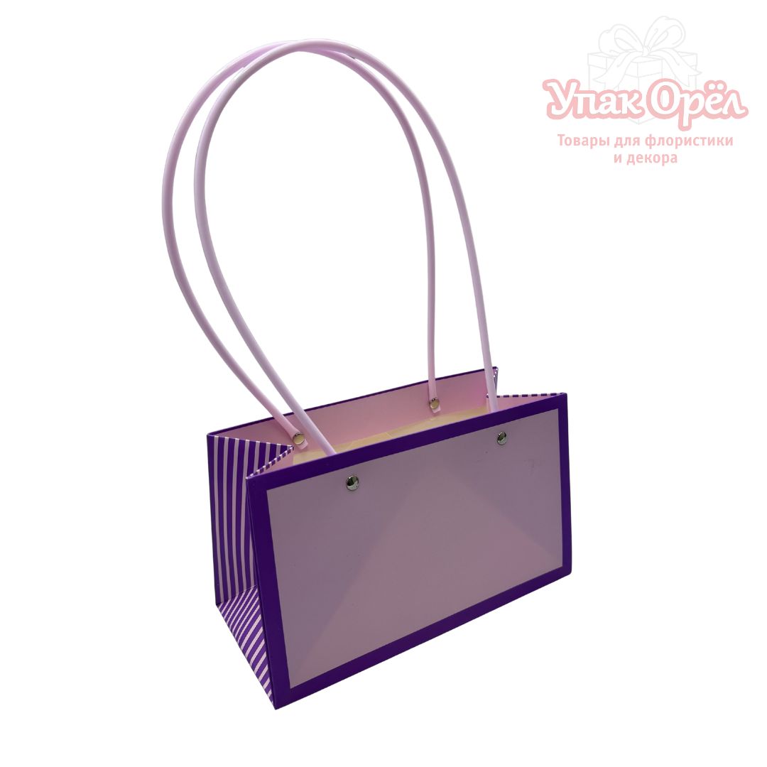 Сумка для цветов с пластиковыми ручками «Прямоугольник», полоски сбоку, 22*10*12см, Сирень