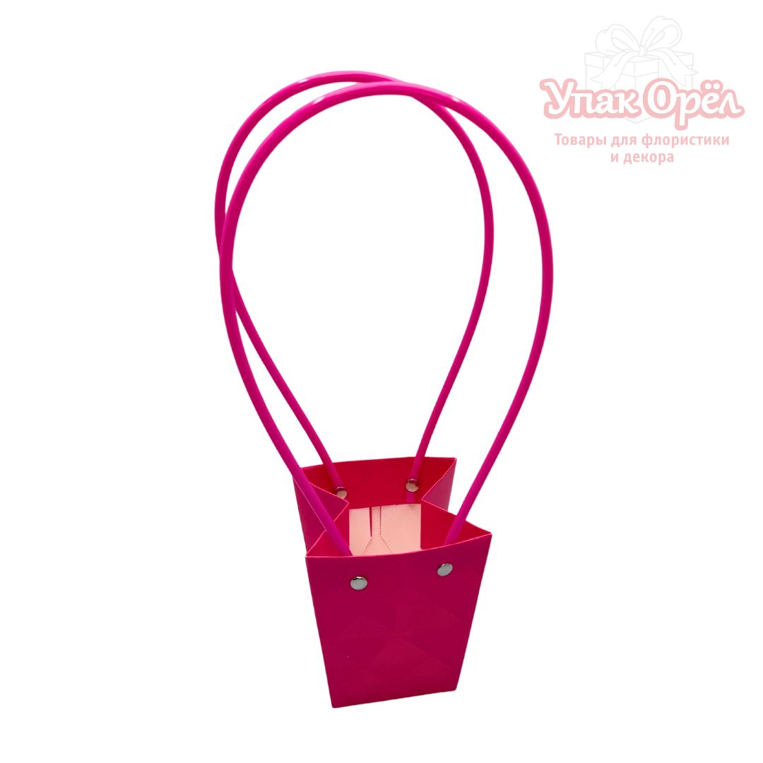 Сумка для цветов с пластиковыми ручками «Трапеция», 10*9*6,5см, тиснение Ромб, Фуксия