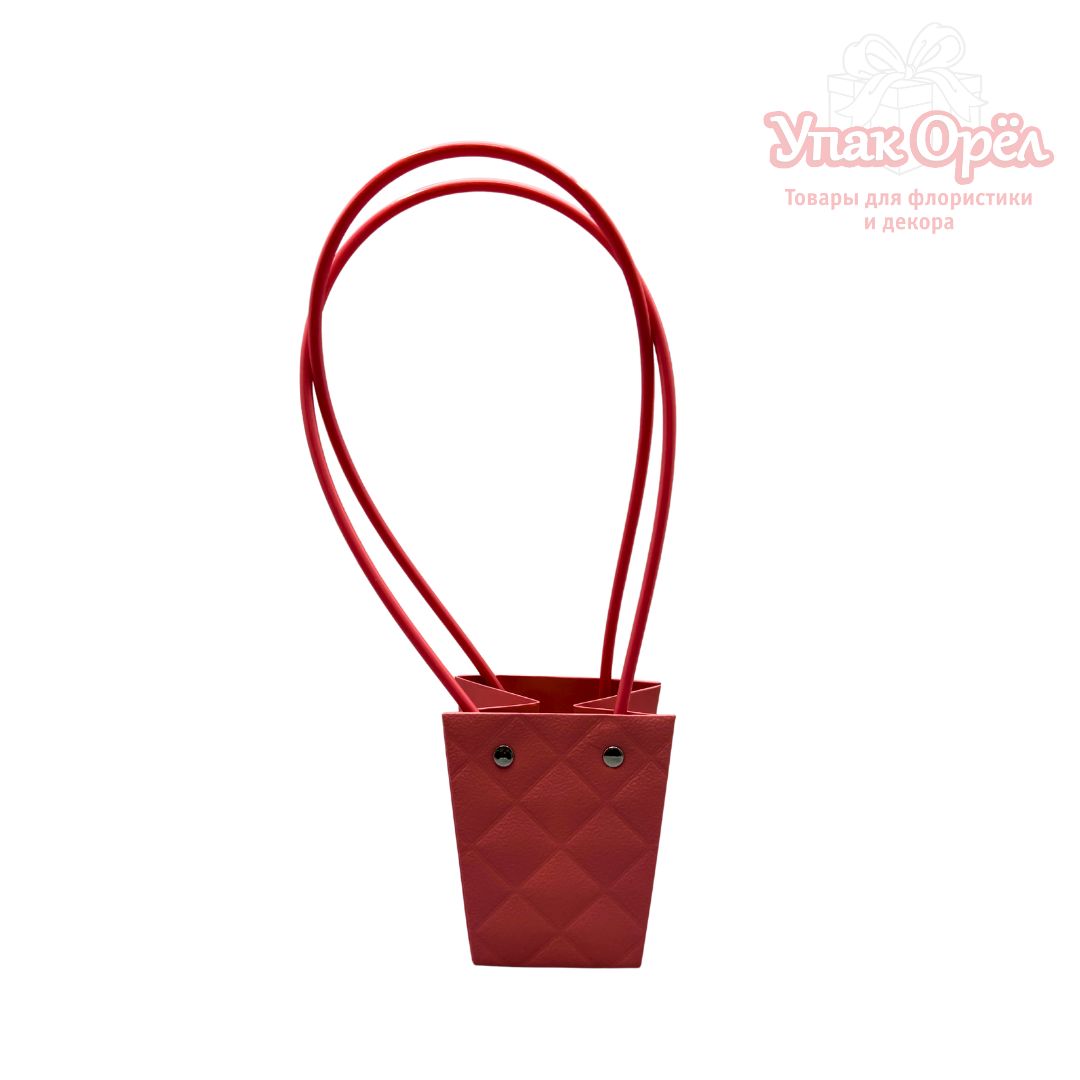 Сумка для цветов с пластиковыми ручками «Трапеция», 10*9*6,5см, тиснение Ромб, Персиковый