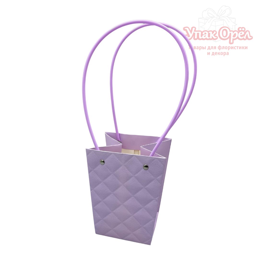 Сумка для цветов с пластиковыми ручками, «Трапеция», 13,5*9,5*15см, тиснение Ромб, Светло-сиреневый