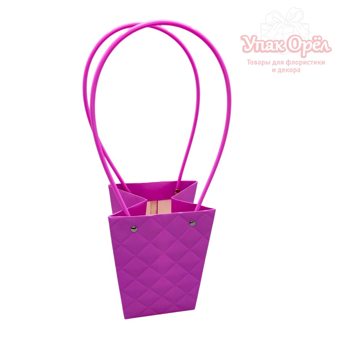 Сумка для цветов с пластиковыми ручками, «Трапеция», 13,5*9,5*15см, тиснение Ромб, Ярко-розовый