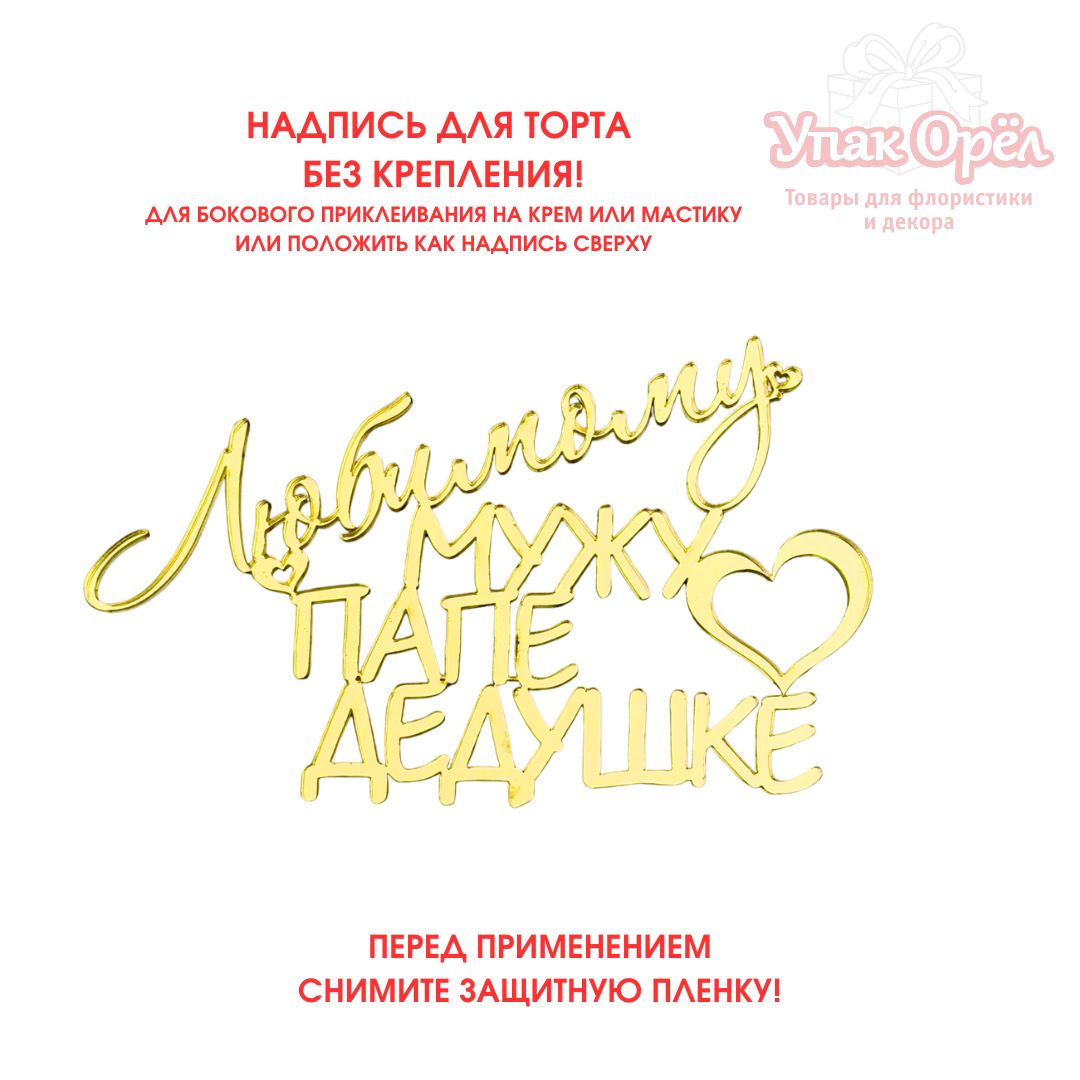 Топпер для торта боковой Яркое золото «Любимому мужу, папе, дедушке», акрил 3мм, 13*8 см