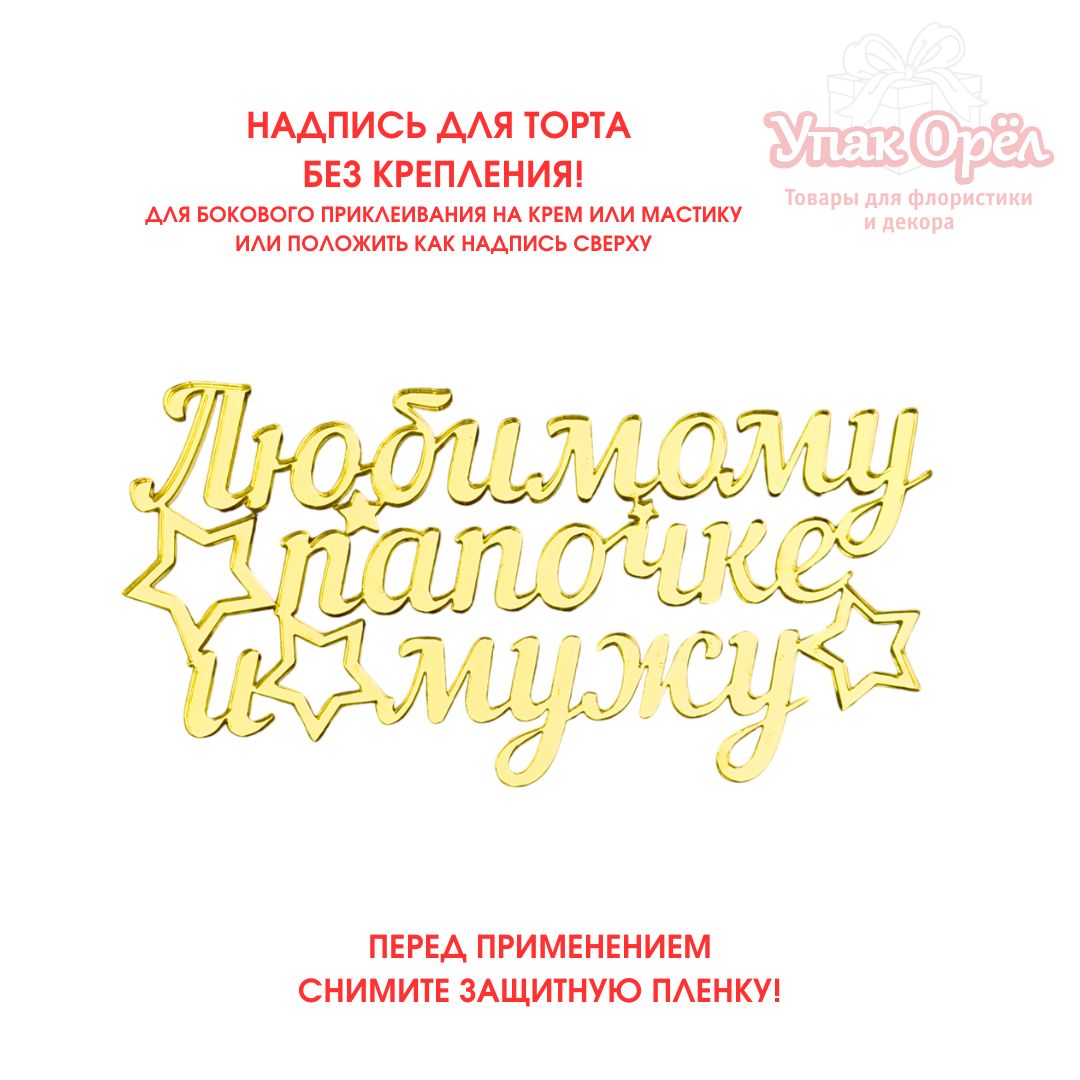 Топпер для торта боковой Яркое золото «Любимому папочке и мужу», акрил 3мм, 11,5*6 см