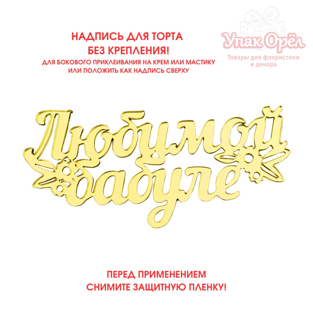 Топпер для торта боковой Яркое золото «Любимой бабуле», акрил 3мм, 11,5*5см