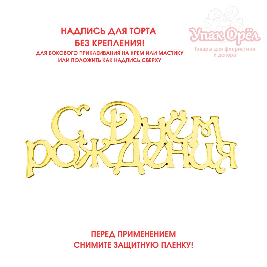 Топпер для торта боковой Яркое золото «С Днем рождения», акрил 3мм, 11,5*4 см