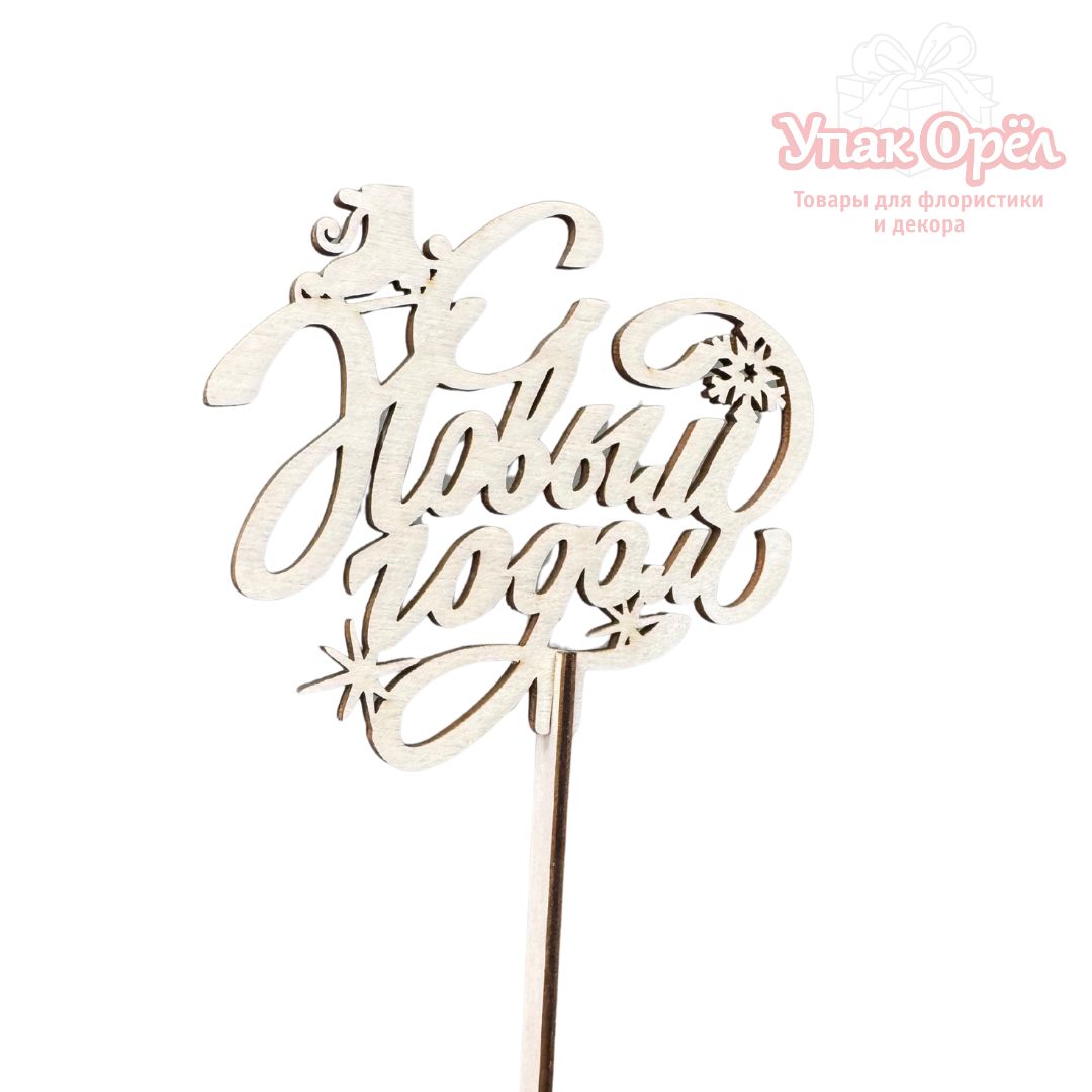 Топпер «С Новым годом» конек, вставка h=25см, Натуральный, НАБОР 5 штук