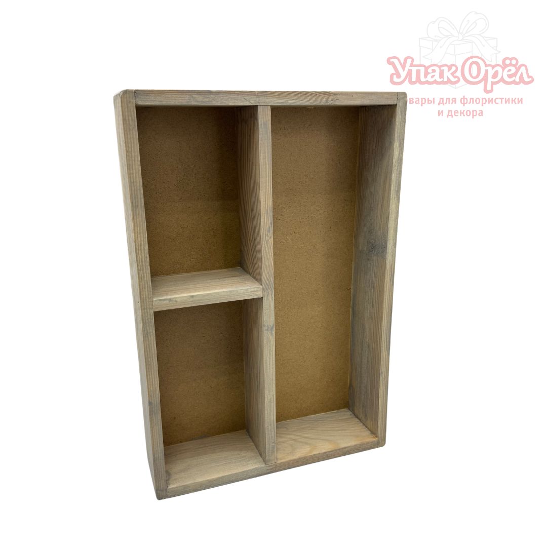 Ящик Дерево с 3-мя отсеками, 34*23*7см, Серый, 1 штука