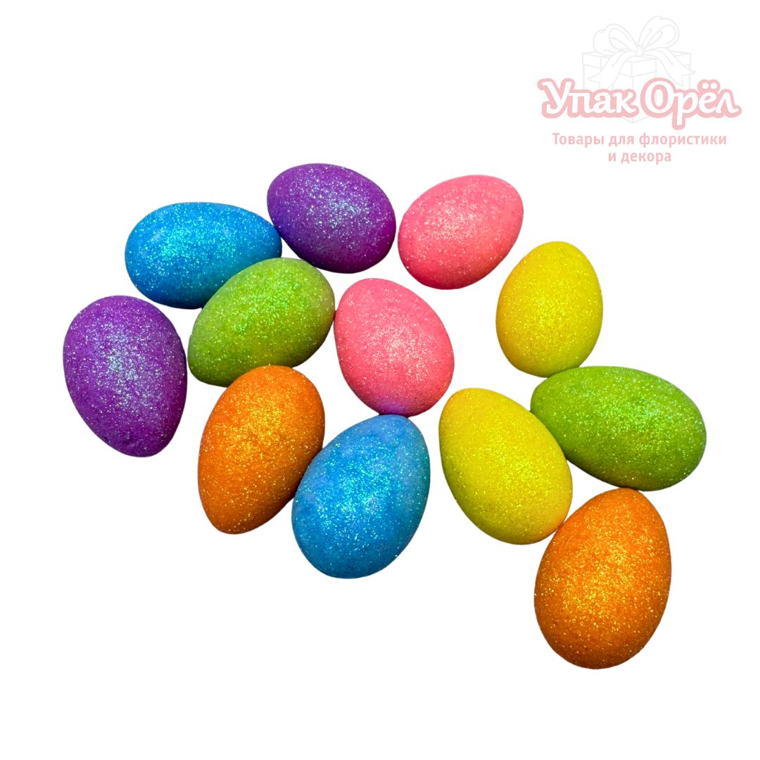 Яйцо из пенопласта в глиттере, 3*4,5см, в ассортименте, 1 штука